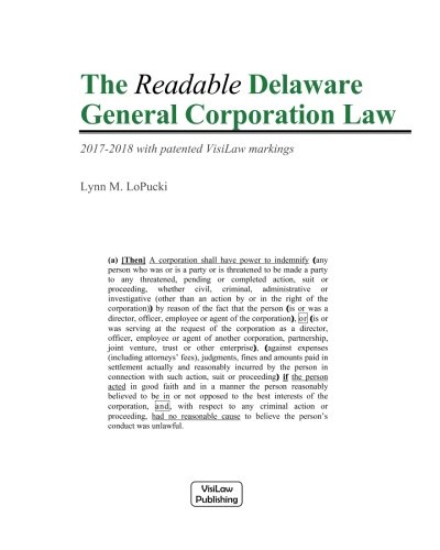 Read The Readable Delaware General Corporation Law: 2017-2018 with patented VisiLaw markings book online now. You also can download other books, magazine and also comics. Get online The Readable Delaware General Corporation Law: 2017-2018 with patented VisiLaw markings today. Are you Looking Download or read The Readable Delaware General Corporation Law: 2017-2018 with patented VisiLaw markings for free..? enjoy it.